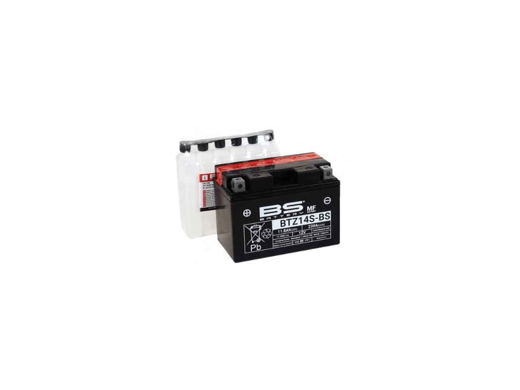 Batéria BTZ14S-BS je súčasťou našej bezúdržbovej MF rady. Táto 12V 11,8Ah batéria sa dodáva s balením elektrolytu (kyseliny) a pred prvým použitím je nutné ju aktivovať naliatím kyseliny.