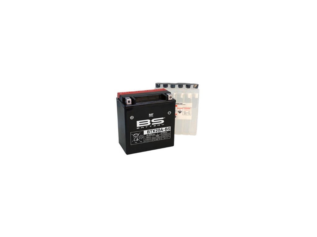 Batéria BTX20A-BS je súčasťou našej bezúdržbovej MF rady. Táto 12V 18,9 Ah batéria sa dodáva s balením elektrolytu (kyseliny) a pred prvým použitím je nutné ju aktivovať naliatím kyseliny.