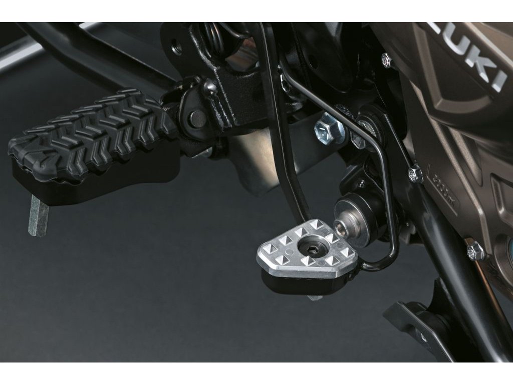 Originálny dizajn SUZUKI, ľahko vymeniteľný brzdový pedál s výškou o 10 mm vyššou v porovnaní s pôvodným vybavením. Poskytuje jazdcom jednoduchú ovládateľnosť na rôznych cestách/povrchoch.