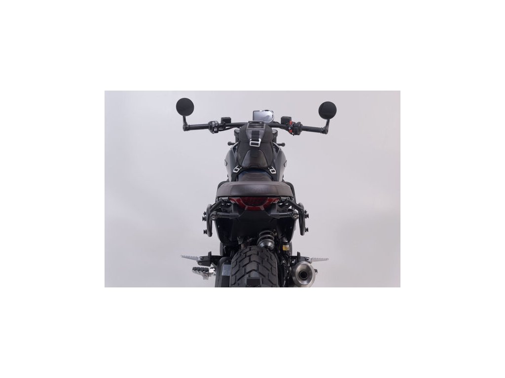Upevnenie na SLC bočný nosič alebo pomocou popruhov na chvost motocykla či externé nosiče.