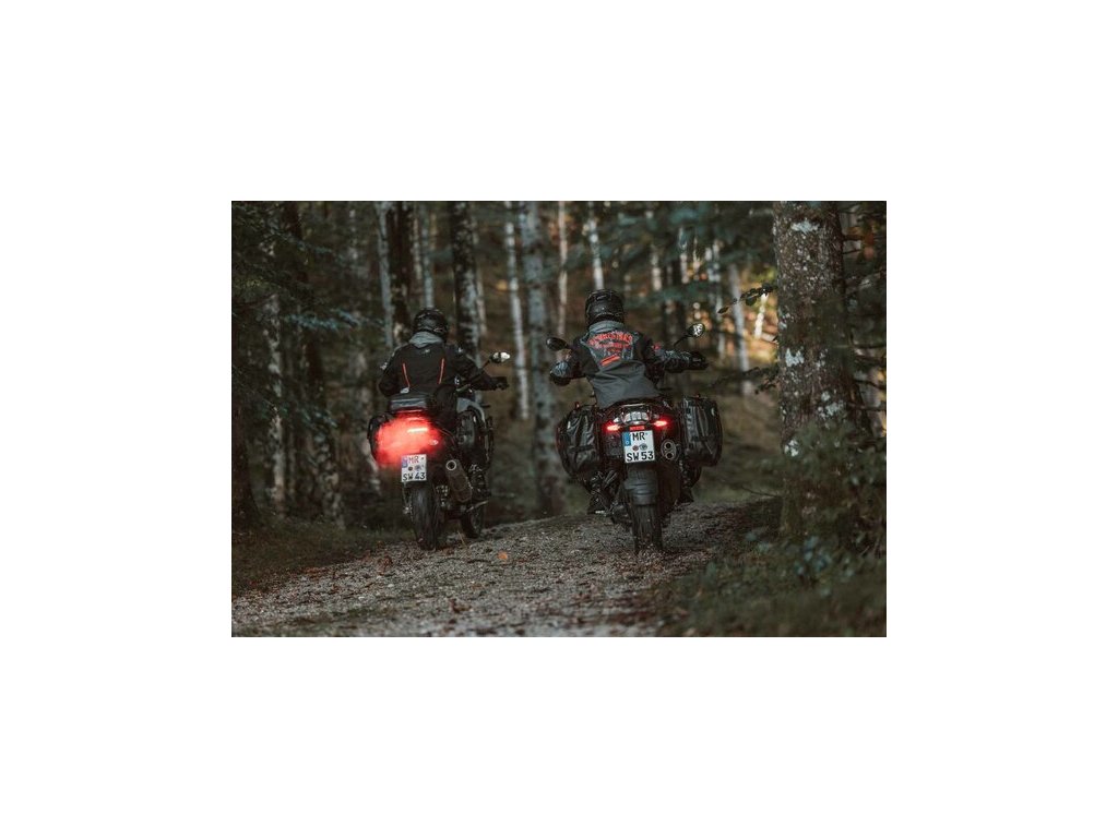 Upevnenie na PRO bočný nosič alebo pomocou popruhov na chvost motocykla či externé nosiče.