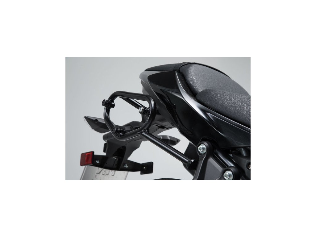 Špecifické spracovanie SLC bočného nosiča umožňuje jednoduchú a bezpečnú montáž na originálne montážne body motocykla.