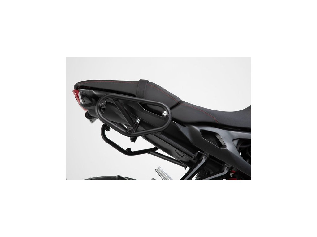 Špecifické spracovanie SLC bočného nosiča umožňuje jednoduchú a bezpečnú montáž na originálne montážne body motocykla.