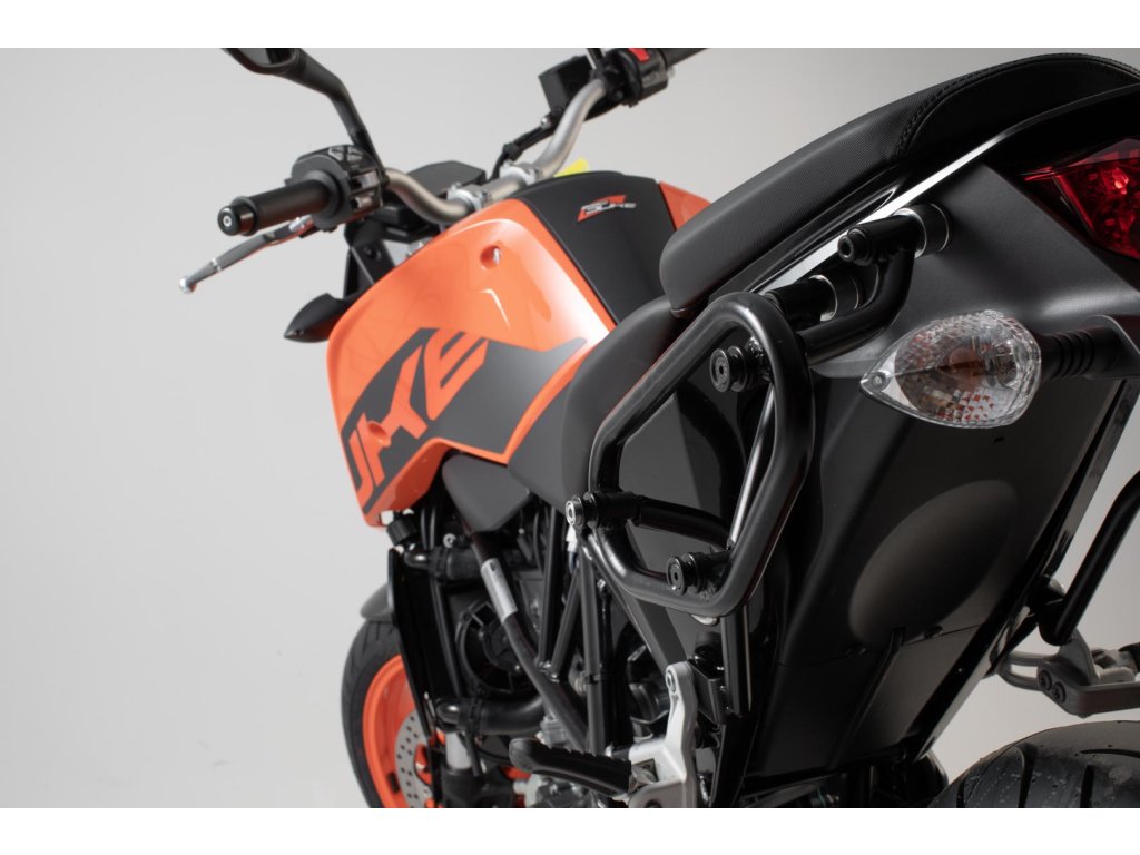 Špecifické spracovanie SLC bočného nosiča umožňuje jednoduchú a bezpečnú montáž na originálne montážne body motocykla.