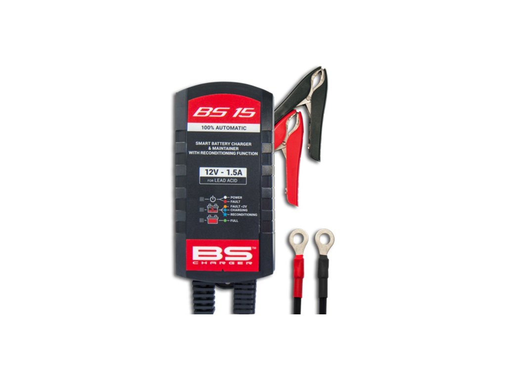 BS 15 je múdra nabíjačka a udržiavacie zariadenie pre 12V olovené batérie s nabíjacím prúdom 1,5 A. Automatická nabíjačka je vhodná pre akumulátory s kapacitou až 30 Ah.