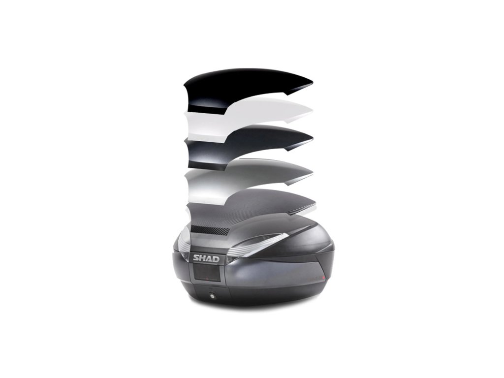 - SH48 ponúka niekoľko variantov ako farebne nakombinovať bočné pásy s vrchným krytom kufra. Je možné si objednať aj karbónový vzhľad veka, ktorý je možné nakombinovať s akoukoľvek farbou motorky. Vrchné kryty je možné ďalej zakúpiť v bielej farbe, metalickej čiernej alebo vzhľad New Titanium či Dark Grey. Je tiež možné objednať si variant bez laku, kedy si farbu krytu môžete sami prispôsobiť podľa vlastného vkusu.